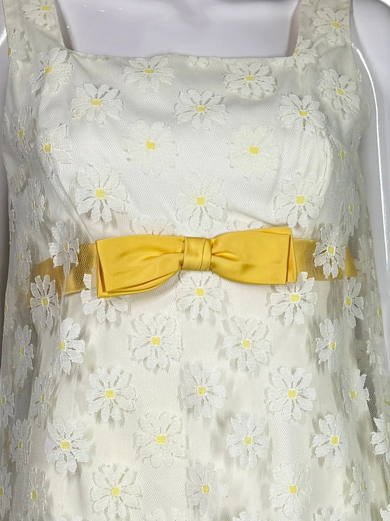 - Cute white and yellow daisy lace overlay