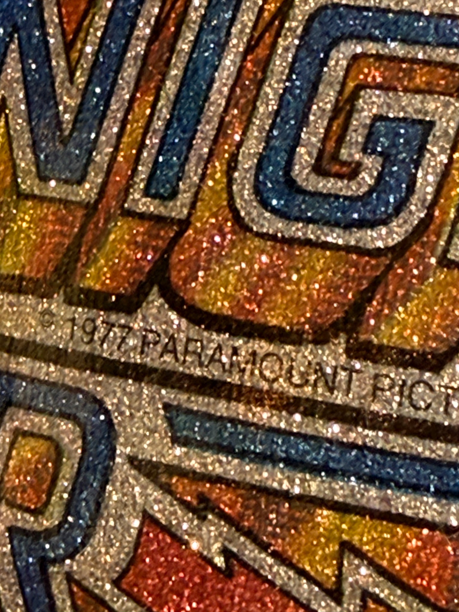 - Glittery yellow, blue, and silver graphic reads "Saturday Night Fever"