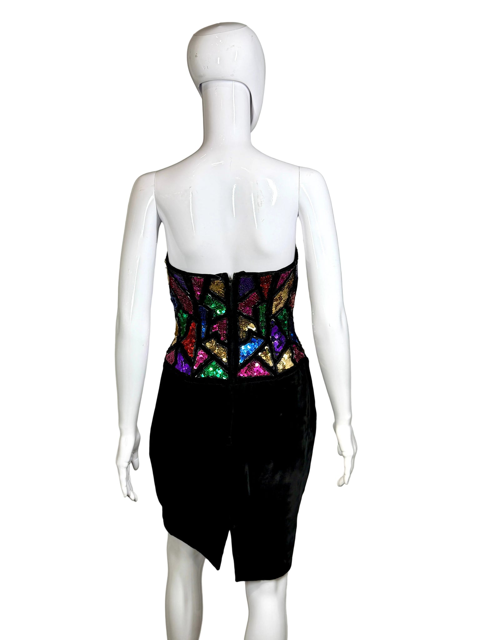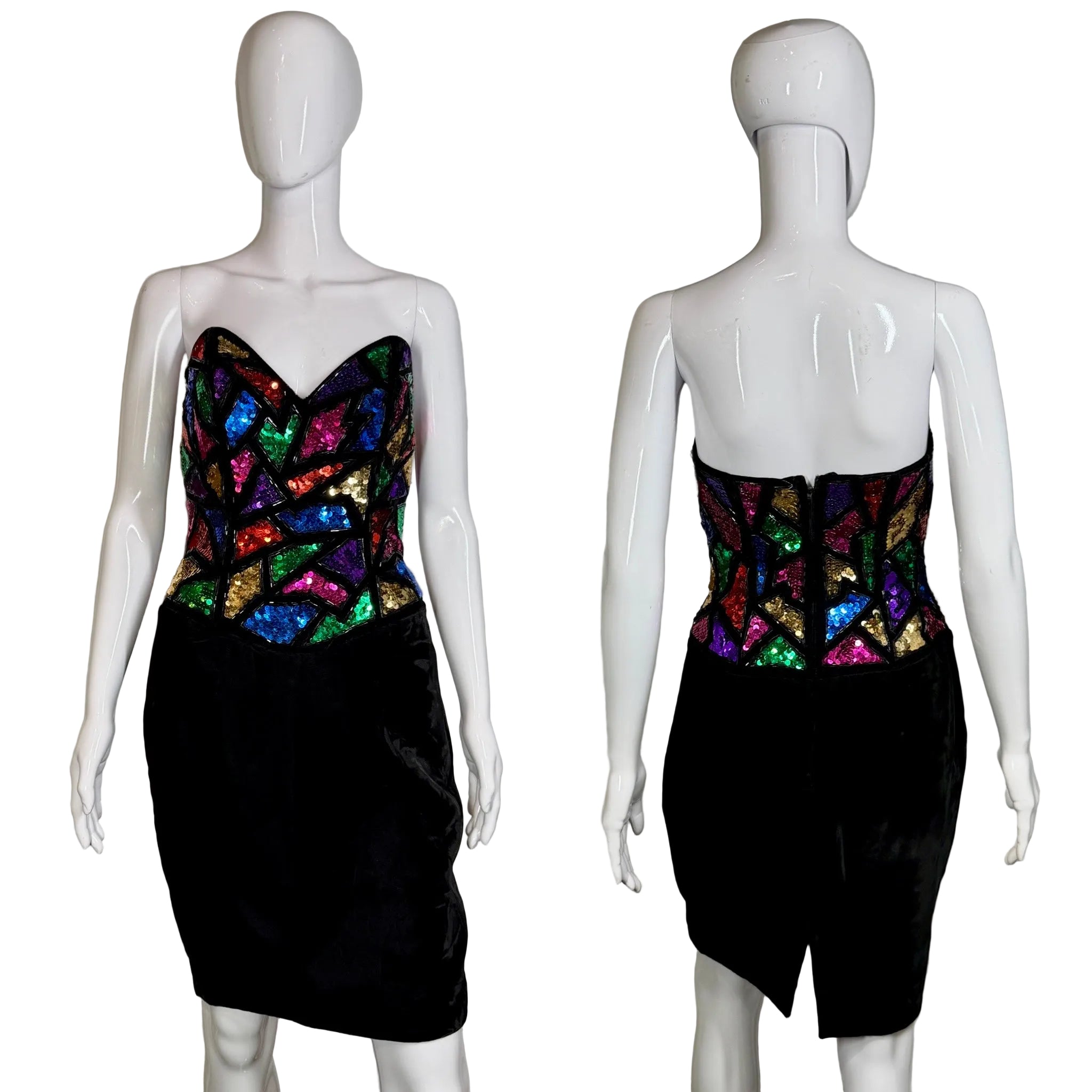 - Multi-colored sequined bodice