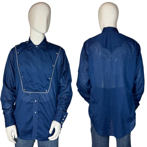 1970's Navy and White Rockmount Western Shirt - Size L/XL